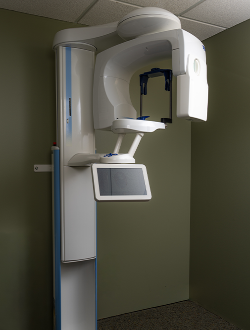 Our CBCT scanner is an advanced diagnostic imaging device that can create a 3D, photorealistic blueprint of your facial anatomy. All you need to do is rest your chin on a platform. The scanner will then rotate around your head capturing hundreds of images that it will piece together to create the model of your face and airway. This is helpful for our team when it comes to planning complex treatments and diagnosing issues like TMJ disorder.