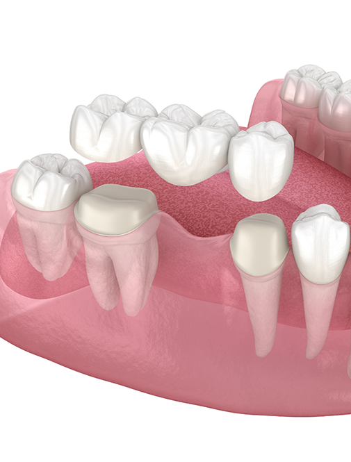 Dental bridges are designed to replace one or more teeth in a row, filling the space left between two of your natural teeth. The restoration is anchored to your existing teeth on either side of the gap in your smile with dental crowns, while the replacement teeth (called pontics) are fused between the two abutment crowns. Once seated within your mouth, your bridge will help improve your ability to eat and speak and give you a big confidence boost!